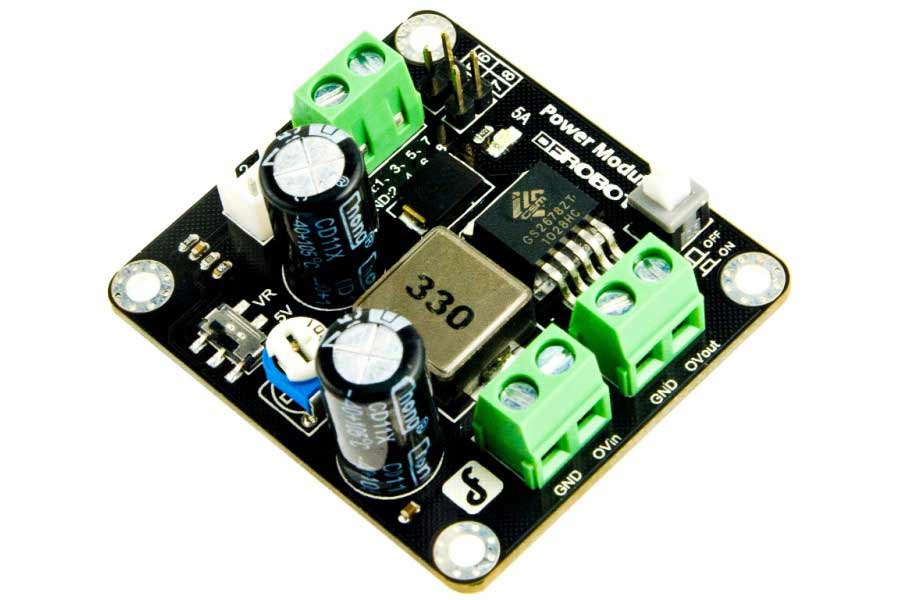 This Power Module is a small size 5A 350KHz 25V Buck DC to DC Converter.It can convert any DC voltage between 3.6V-25V to a selectable voltage from 3.3V to 25V.