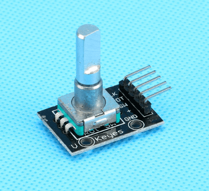 rotary encoder can count angular rotation and detect clockwise & counterclockwise rotation. Unlike a potentiometer, it has no end point; so it can be rotated continuously. It also has a built-in push button which is activated by pressing the encoder downwards.